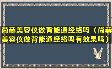 尚赫美容仪是一种常见的美容仪器,它通常用于皮肤护理和身体放松。关于使用尚赫美容仪做背是否能通经络以及是否有效果,以下是一些相关的信息: