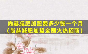 关于“尚赫减肥加盟全国火热招商”的信息,如果您有意向了解或参与加盟,建议您采取以下步骤进行详细了解和评估: