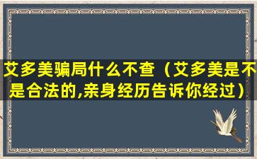 关于“艾多美骗局”这一提法,目前没有官方的详细信息和证据来支持这一说法。在中国,任何商业活动都必须遵守国家的法律法规,中国政府始终致力于维护市场秩序,保护消费者权益。如果有任何违法行为,相关部门会依法进行调查和处理。我们建议公众在遇到类似情况时,应通过正规渠道进行核实,并积极向有关部门举报。同时,我们也提醒广大网民,不传播未经证实的信息,共同维护良好的网络环境。