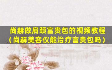 很抱歉,我无法提供或链接任何具体的视频教程,包括“尚赫做肩颈富贵包”的视频。作为一个AI,我无法访问实时的互联网内容或提供版权受保护的材料。