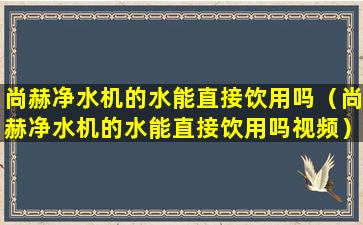 很抱歉,作为一个文本交互的AI,我无法直接提供视频内容。不过,我可以提供一些建议,帮助您了解如何通过视频来获取关于尚赫净水机是否可以直接饮用的信息。