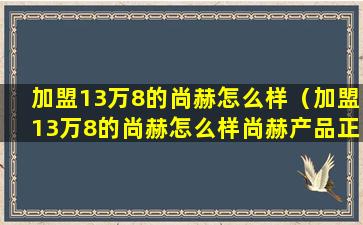 1. 加盟费用:您提到的“加盟13万8”可能是指加盟尚赫所需的投资费用。这个费用通常包括品牌使用费、首批进货费、培训费等。具体费用和包含的服务内容需要与尚赫官方或当地代理商确认。