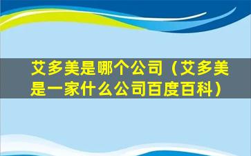 艾多美是哪个公司(艾多美是一家什么公司百度百科)