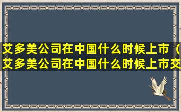如果您想了解艾多美最新的上市情况或者是否有计划在中国上市,建议直接查询艾多美公司的官方公告或者通过正规金融信息渠道获取最新信息。同时,由于市场情况和公司战略可能会发生变化,建议关注艾多美公司的官方新闻发布和财务报告,以获取最准确的信息。