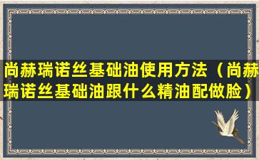 尚赫瑞诺丝基础油是一种高品质的植物基础油,通常用于护肤、按摩和身体护理。以下是尚赫瑞诺丝基础油的一般使用方法: