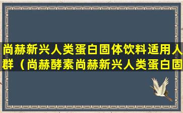 尚赫新兴人类蛋白固体饮料是一种营养补充品,通常含有高质量的蛋白质,旨在帮助满足特定人群的营养需求。以下是一些可能适用的人群: