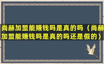 对于尚赫加盟的信息,可以明确地说这是不真实的。在投资决策时,务必进行充分的调查和谨慎的考虑。