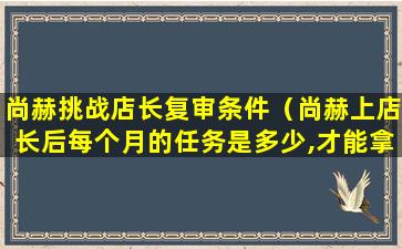 “尚赫挑战店长复审条件”可能是指尚赫公司(Shanhe)或类似组织在选拔或评估店长时所设定的一系列标准和要求。这些条件通常旨在确保店长具备必要的管理能力、业务知识和服务质量,以维持和提升店铺的运营效率和顾客满意度。