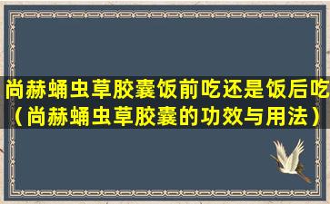 尚赫蛹虫草胶囊是一种含有蛹虫草提取物的保健品,其服用时间通常建议在饭后。这是因为饭后服用可以帮助减少对胃部的刺激,并且有助于身体更好地吸收其中的营养成分。