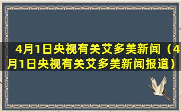 关于您提到的“4月1日央视有关艾多美新闻”,目前没有官方信息证实央视在4月1日发布了与艾多美相关的新闻报道。请您关注官方媒体发布的权威信息,并注意甄别网络上的信息真伪。我们始终坚持正确的舆论导向,积极传播正能量,维护网络空间的清朗。如有官方消息,我们将第一时间通过正规渠道进行发布。感谢您的关注。