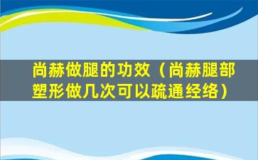 关于“尚赫腿部塑形”和“疏通经络”的问题,首先需要澄清的是,“尚赫”并不是一个广为人知的医学或健身术语,因此我无法提供关于“尚赫腿部塑形”的具体信息。通常,腿部塑形可能指的是一系列旨在改善腿部线条和肌肉形态的锻炼或治疗。
