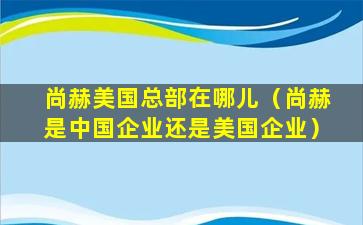 截至我所知的信息,尚赫(Shaklee)是一家美国的健康和营养品公司,其总部位于加利福尼亚州的普莱森顿(Pleasanton)。如果您需要最新的信息,建议直接访问尚赫的官方网站或联系他们的客服以获取最准确的位置信息。