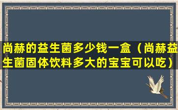 尚赫益生菌的价格因地区、销售渠道和促销活动等因素可能有所不同,通常在人民币100元至300元之间。具体价格建议咨询当地的药店或通过官方渠道查询。