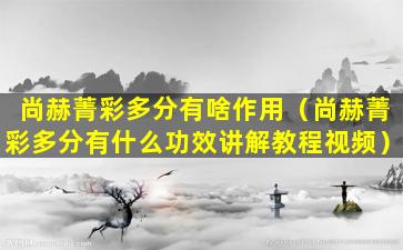 关于“尚赫菁彩多分”的功效讲解教程视频,目前没有官方的详细信息和教程视频。如果您想了解该产品的具体功效,建议您直接咨询产品的官方渠道或授权销售商,以获取最准确和权威的信息。同时,购买任何健康或美容产品时,请确保来源可靠,并注意查看产品的成分和使用说明,以确保安全和效果。