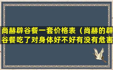 关于“尚赫辟谷餐”的价格,我无法提供具体的价格表,因为这需要从官方渠道或授权的销售点获取最新信息。建议您直接联系尚赫品牌的官方客服或访问其官方网站以获取最准确的价格信息。同时,购买任何健康产品时,请确保选择正规渠道,并注意产品的质量和安全性。