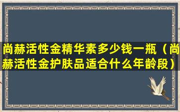 尚赫活性金护肤品是一款以活性金为主要成分的护肤产品,它通常宣称能够帮助改善肌肤的弹性、紧致度和光泽。这类产品往往适合多个年龄段的人群,但具体适合的年龄段可能会因产品的具体配方和功效而有所不同。