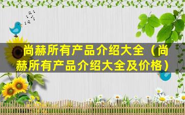 很抱歉,我无法提供“尚赫所有产品介绍大全视频”的具体内容,因为作为一个文本基础的AI,我无法直接访问或播放视频内容。不过,我可以提供一些关于尚赫公司及其产品的一般信息。