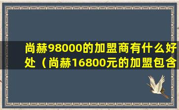 尚赫是一家知名的美容健康品牌,其加盟政策可能会随时间而有所变化。根据您提供的信息,“尚赫16800元的加盟”可能指的是某个特定的加盟套餐或入门级加盟费用。通常,这样的加盟费用可能包含以下几个方面的内容: