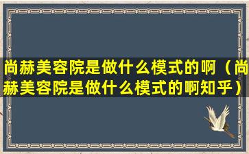 请注意,以上信息是基于一般美容院的运营模式推测的,具体到尚赫美容院的实际运营模式,建议直接咨询该美容院或访问其官方网站获取最准确的信息。