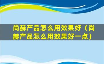 请注意,不同的尚赫产品可能有不同的使用方法和效果,因此上述建议是一般性的。具体产品的使用方法和效果,请参考产品说明或咨询专业人士。