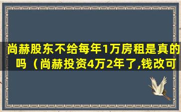 关于“尚赫股东不给每年1万房租”的说法,目前没有官方或可靠的新闻报道证实这一信息。网络上的视频和信息需要谨慎对待,因为它们可能包含不准确或未经证实的信息。