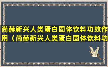 尚赫新兴人类蛋白固体饮料是一种营养补充品,它含有蛋白质和其他营养成分,旨在帮助补充日常饮食中可能缺乏的营养素。关于其功效和作用,通常包括以下几点: