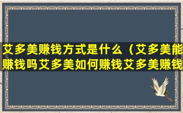 截至我的知识更新日期(2023年),艾多美(Amway)是一家全球性的直销公司,主要通过直销模式销售健康、美容和个人护理产品。艾多美的赚钱方式主要是通过以下几个途径: