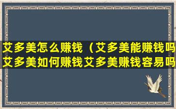 艾多美怎么赚钱(艾多美能赚钱吗艾多美如何赚钱艾多美赚钱容易吗)