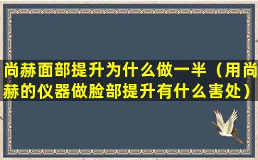 “尚赫面部提升”通常指的是一种面部美容手术,旨在通过提升面部皮肤和组织来减少皱纹和松弛,从而达到年轻化的效果。如果您提到的是“做一半”,这可能意味着手术过程中出现了某种情况,导致手术没有完成预期的全部步骤。
