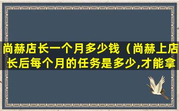 在中华人民共和国,劳动者的工资应当符合国家的相关法律法规,保障劳动者的合法权益。如果您是尚赫的店长或有意成为店长,建议您与公司明确工资待遇,并确保所有劳动条件符合法律规定。
