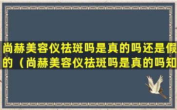 尚赫美容仪是一种家用美容仪器,它声称能够通过特定的技术帮助改善皮肤问题,包括祛斑。关于尚赫美容仪是否真的有效祛斑,这需要从几个方面来考虑: