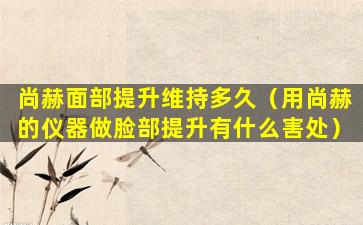 尚赫面部提升是一种非手术的面部年轻化治疗方法,它通过使用特殊的设备和技术来刺激皮肤的胶原蛋白再生,从而达到紧致肌肤、减少皱纹的效果。尚赫面部提升的效果维持时间因人而异,通常情况下,其效果可以维持6个月到1年左右。