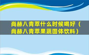 尚赫八青萃是一种营养补充品,通常建议在以下几个时间段饮用,以获得最佳效果: