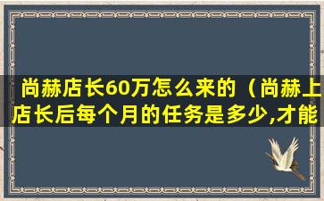 “尚赫店长60万”这个表述可能指的是某个具体事件或情况,但没有足够的信息来确定其确切含义。如果您能提供更多的上下文或详细信息,我可能能够提供更准确的解释或信息。如果您是在询问关于某个特定的新闻事件、商业活动或其他情况,请提供更多的细节,以便我能够更好地帮助您。