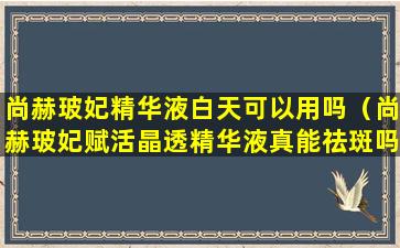 尚赫玻妃精华液在白天使用是安全的,但要注意防晒和正确的使用方法。如果有任何疑问,建议咨询专业的皮肤科医生或美容顾问。