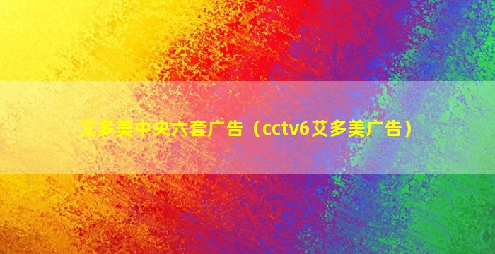 截至我的知识更新日期(2023年),我没有具体的信息关于“CCTV6艾多美广告”。CCTV6是中国中央电视台的电影频道,而“艾多美”可能是指某个品牌或产品。如果这个广告是在CCTV6上播放的,那么它可能是一个与电影或娱乐相关的品牌或产品的广告。