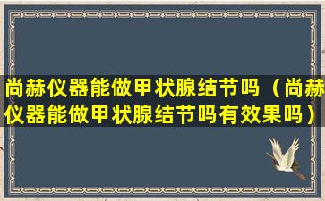关于“尚赫仪器”是否能用于治疗甲状腺结节以及其效果如何,目前没有足够的信息来做出准确的判断。甲状腺结节的治疗通常需要专业的医疗设备和医生的诊断。在中国,甲状腺疾病的治疗遵循科学和规范的医疗流程,医生会根据患者的具体情况推荐合适的治疗方法。