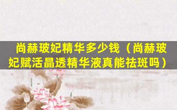 尚赫玻妃精华液的价格可能会因地区、销售渠道和促销活动等因素而有所不同。为了获取最准确的价格信息,建议您直接访问尚赫品牌的官方网站、授权的零售商或通过官方客服渠道进行咨询。这样可以确保您获得的是最新且最准确的产品价格。同时,购买时请确保选择正规渠道,以保证产品的真实性和质量。