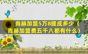 尚赫是一家以健康产业为主的公司,提供包括健康产品、美容产品等在内的多种产品。关于“尚赫加盟费五千八都有什么”,这通常指的是加盟尚赫品牌所需支付的加盟费用。加盟费用的具体内容可能包括以下几个方面: