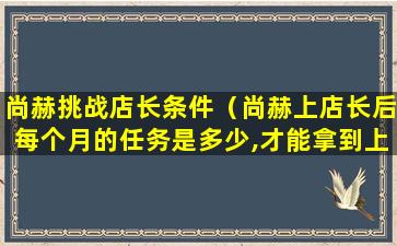 具体的“尚赫挑战店长条件”可能还包括特定的公司要求,如特定的培训课程完成、业绩目标达成等。为了获取最准确的信息,建议直接咨询尚赫公司或查看其官方发布的招聘信息和指南。
