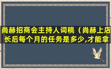 由于我无法提供具体的“尚赫招商会主持完整版”内容,因为这通常是公司的内部资料或特定活动的记录,但我可以提供一个一般性的招商会主持流程的: