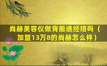 尚赫美容仪是一种常见的美容仪器,它通常通过微电流、振动、热能等方式来帮助改善肌肤状况,促进血液循环,提升肌肤紧致度等。关于使用尚赫美容仪做背是否能通经络,这里需要明确几点: