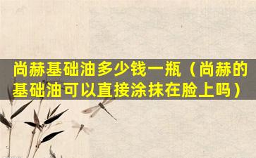 尚赫(Shanhe)的基础油是否可以直接涂抹在脸上,取决于该基础油的类型和个人的皮肤状况。基础油通常是指用于稀释精油或作为护肤品的植物油,如甜杏仁油、葡萄籽油、椰子油等。这些油通常具有滋润和保护皮肤的作用。