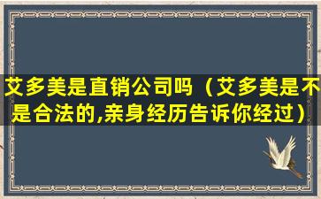 如果您想了解更多关于艾多美的具体信息,建议直接访问其官方网站或联系其官方代表获取最准确的信息。同时,如果您对直销模式有疑问或担忧,可以查阅相关法律法规,了解直销的合法性和消费者权益保护措施。在中国,直销企业需要获得中国商务部的批准,并且遵守相关法律法规。