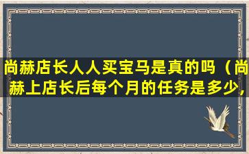 在直销行业中,业绩和奖励通常与个人的努力和市场情况紧密相关。因此,不能一概而论地说“尚赫店长人人买宝马”。这种说法可能存在夸大宣传的成分,消费者和潜在的直销人员应该基于事实和个人的实际情况来做出判断。