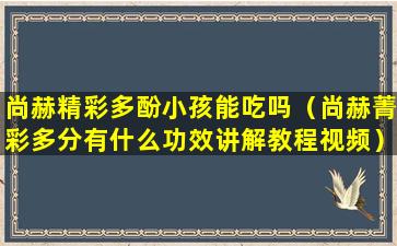 尚赫精彩多酚是一种含有多种植物多酚的保健食品,通常用于帮助成年人调节身体机能和抗氧化。对于儿童是否可以食用,建议如下: