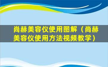 请确保在使用任何美容仪器之前,详细阅读并遵循制造商提供的具体说明和安全指南。如果您需要更详细的视频教学,建议访问尚赫官方网站或其授权的销售平台,通常这些平台会提供产品的详细使用教程视频。