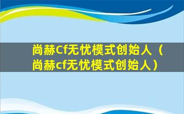 “尚赫Cf无忧模式”可能是指某个特定的商业模式或者服务模式,但是根据目前的信息,无法确定其具体内容和创始人。如果您需要了解更详细的信息,建议您直接联系尚赫公司或者查阅相关的官方资料。