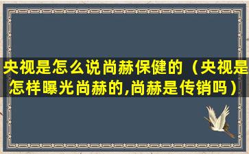 截至我所知的信息更新日期(2023年),央视(中国中央电视台)作为中国的官方媒体,通常会基于事实和官方立场来报道新闻。关于尚赫保健的报道,如果存在,央视会遵循新闻报道的原则,提供准确的信息,并可能基于官方的健康和市场监管政策来评论相关企业或产品。