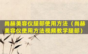 很抱歉,作为一个文本基础的AI,我无法直接提供视频内容。但我可以为您提供一个尚赫美容仪使用方法的文字描述,特别是针对腿部的使用方法。请注意,以下步骤是基于一般美容仪的使用方法,具体操作可能因产品型号而异,建议您在使用前仔细阅读产品说明书。